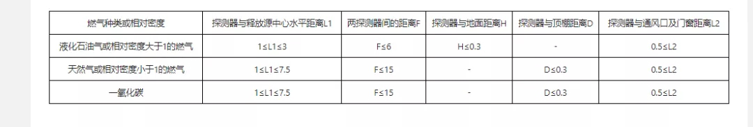 2、相鄰兩個(gè)探測(cè)器距離應(yīng)符合1表的規(guī)定;